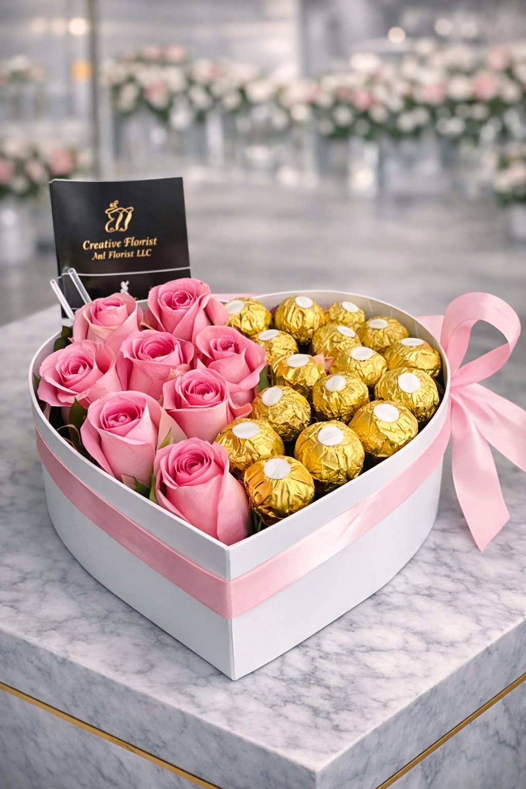 Embrace sweetness with Sweet Zephyr (Taffy) Flower, a luxurious arrangement featuring beautiful roses and Ferrero chocolates in a heart-shaped box. Ideal for expressing love on special occasions or making someone’s day brighter, it combines beauty and indulgence. Create moments filled with heartfelt sentiments, sweetness, and elegance with this exquisite gift.